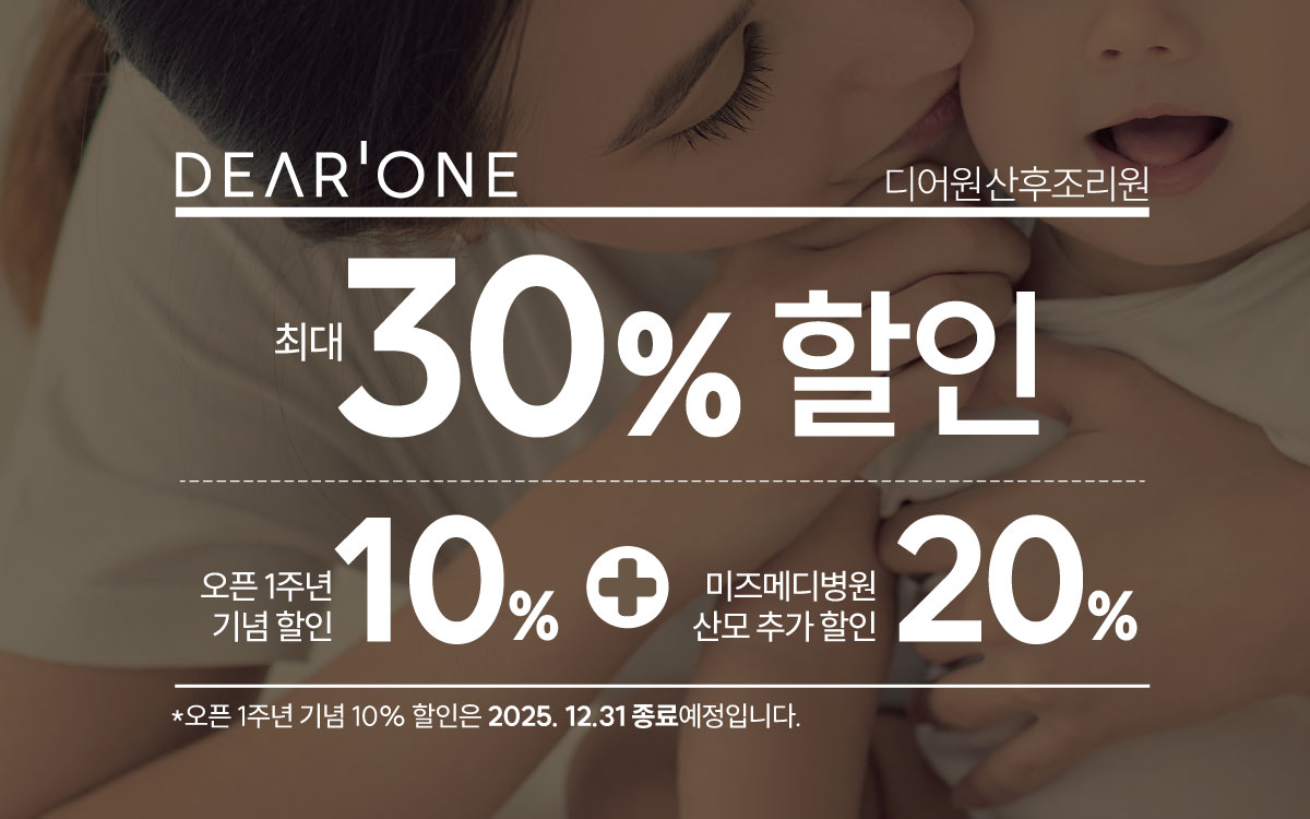 미즈메디병원 산모님은 기존 할인 20%와 추가 할인 10% 적용하여 최대 30% 할인 적용해드립니다.